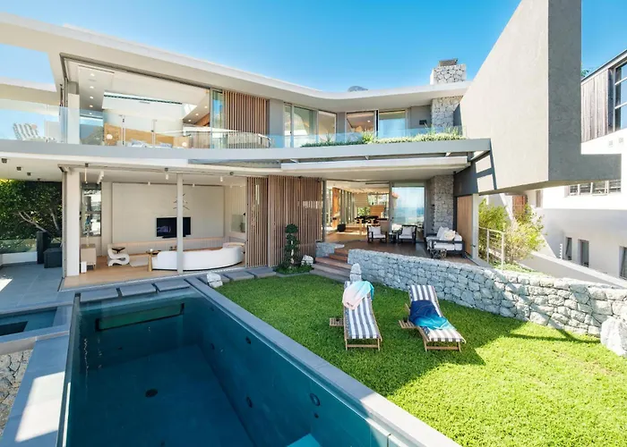 The 5-bedroom Grand Camps Bay 5Bed W Views Pool Gym Villa Serena Cape Town provides easy access to various city attractions, such as La Belle, situated merely 6 minutes' walk away. Located around 6 km from the Castle of Good Hope, the villa boasts a patio with views of the sea.